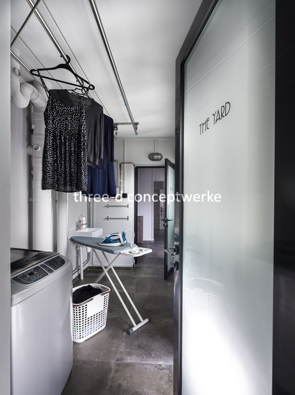 To give the home greater dimension and add an air of mystery, we converted a corner of the common area into a “man cave”, complete with metal-vaulted walls and louvre-panels.
