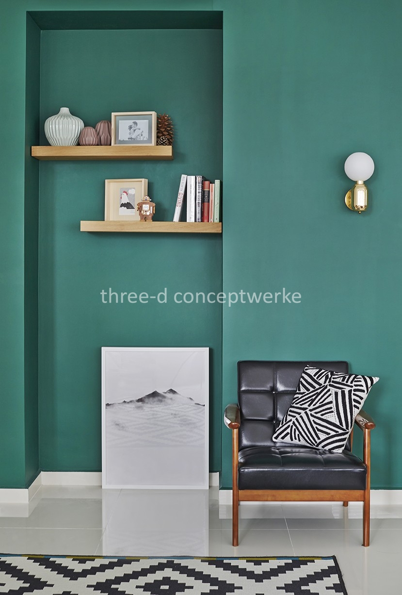 A lush green wall anchors the apartment, a choice of colour that needed much persuasion and convincing for the clients. But after we won them over it was one they didn’t regret. And with that, everything else came together effortlessly, complimenting each other and blending harmoniously in this space they call home.